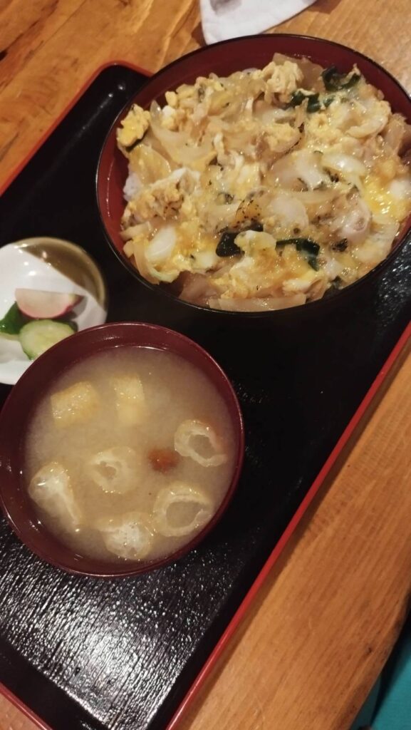 つぶ貝を玉子でとじた「つぶとじ丼」。